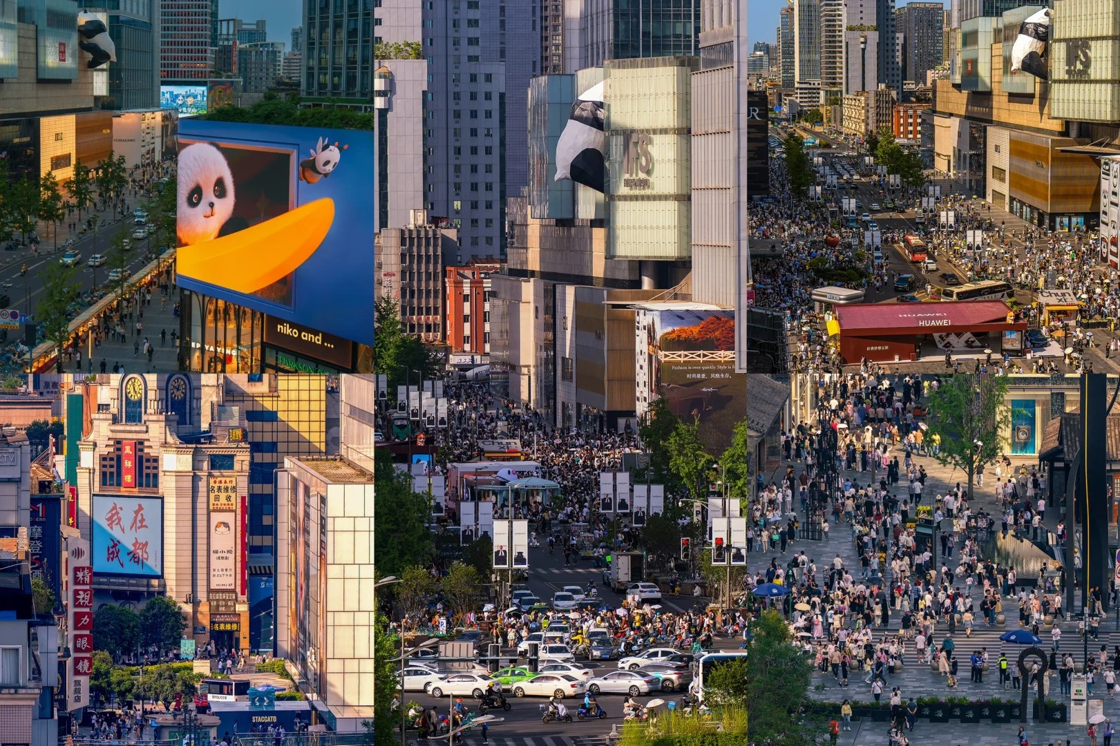 The district follows a grid system centered on Chunxi Road’s main axis, branching into three zones: